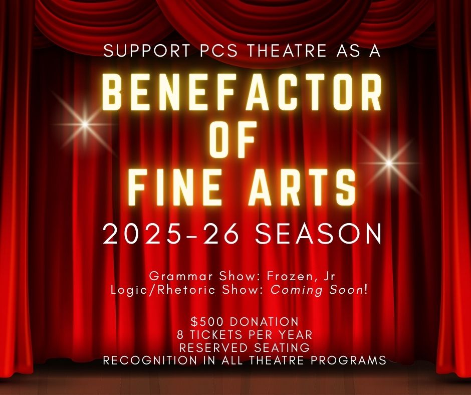 Patrons of the fine arts are essential to our mission. We ask friends of the school to support the arts at PCS by attending one of our performances or exhibitions, or by partnering with us as a donor. Your support makes it possible for our school to offer a variety of excellent programming in this area, and to encourage creative students to glorify the Lord with their talents.